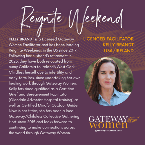 The Gateway Women Reignite Weekend is a transformational healing and connection weekend for childless-not-by-choice women created by Jody Day (psychotherapist & founder of Gateway Women) in 2012, and has been running ever since, to glowing testimonials (scroll down to read some). Below are the currently scheduled dates for our in-person and online Reignite Weekend workshops, led by our team of Licensed Gateway Women Facilitators, all known closely, and for many years, by Jody Day. If you want to know when new dates and locations are added to the listings, please make sure you are on the Gateway Women mailing list, which Jody sends out on the first Saturday of each month and which includes lots of other news, events, free webinars, podcasts, etc, to support you through your childlessness and beyond.