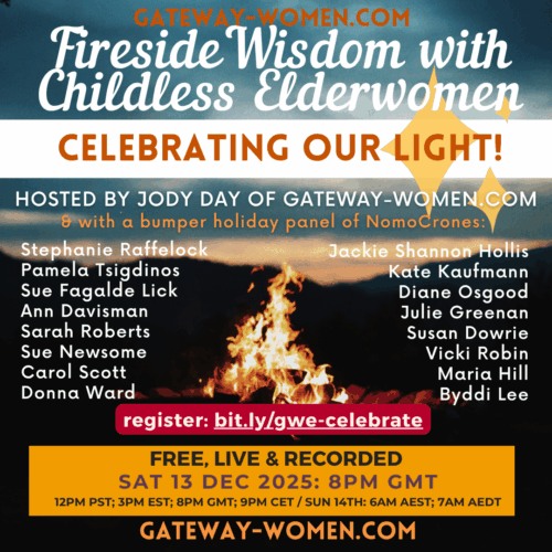 I was already kind of on my way. I thought my plan B was to become a psychotherapist. I had wanted to be one for some time, but I had decided I couldn’t become one until I was a mother, because I thought I wouldn’t understand the human condition until I was a mother, because the pronatalist beliefs were deep in me as well. And then when I realised I was definitely going to be childless, I thought, me and the human condition, we’re actually quite well acquainted, I think I could give it a go. So I moved forward with that plan. Gateway Women started the year after I’d already started my psychotherapy training. I didn’t know Gateway Women was going to become this organisation that means so much to so, so many people. My website had 2 million hits. It’s meant so much to so many people around the world, childless men too, and I think it’s really important to include them because the disenfranchised grief of childlessness, is even more disenfranchised for childless men, that it’s as if they’ve been acculturated, well not as if, they have been acculturated not to be vulnerable, and to be grieving childlessness is to be incredibly vulnerable. And there’s very little support out there for them. I have encouraged several men over the years that I know to start something, and if you go to my website and go to Resources and click on Childless Men, everything that I know that is there for childless men is there.